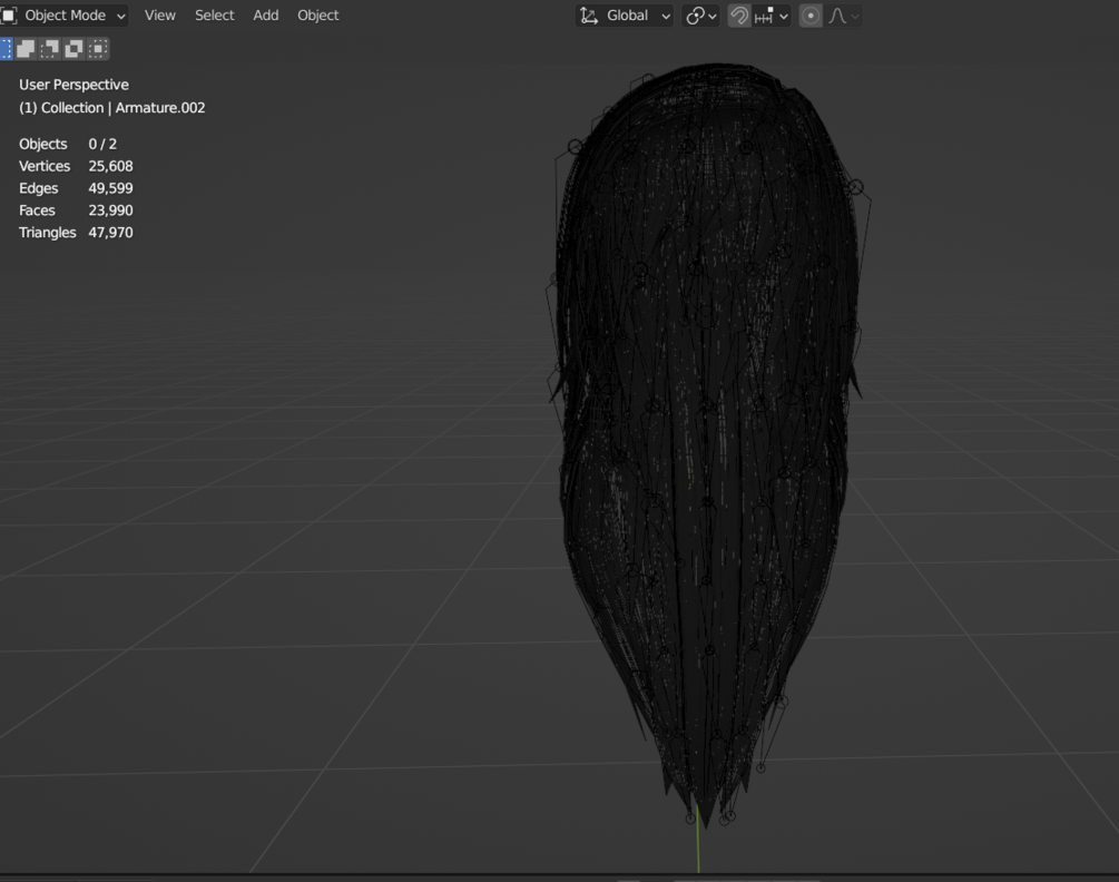 This hair has 55 bones for those that need to know. Blender statistics listed in the photos.