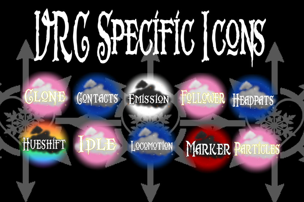 The icons cover VRC specific functions, regular things, and some NSFW options.
